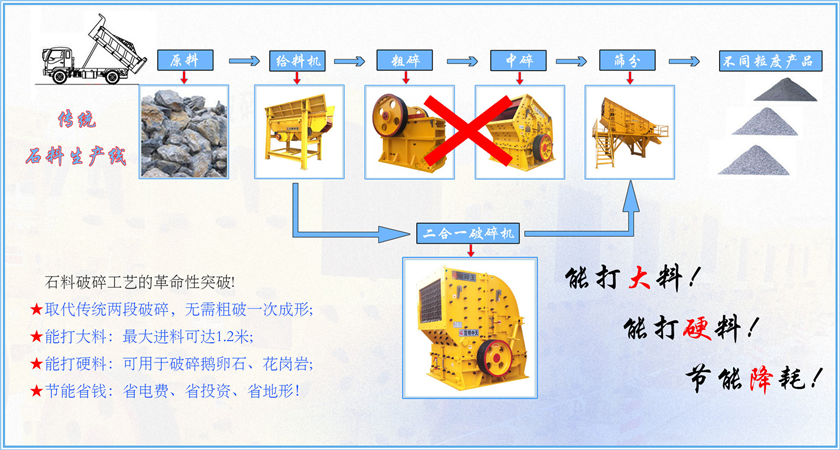 新型高效節(jié)能型二合一破碎機(jī)比傳統(tǒng)破碎機(jī)有哪些優(yōu)點呢?