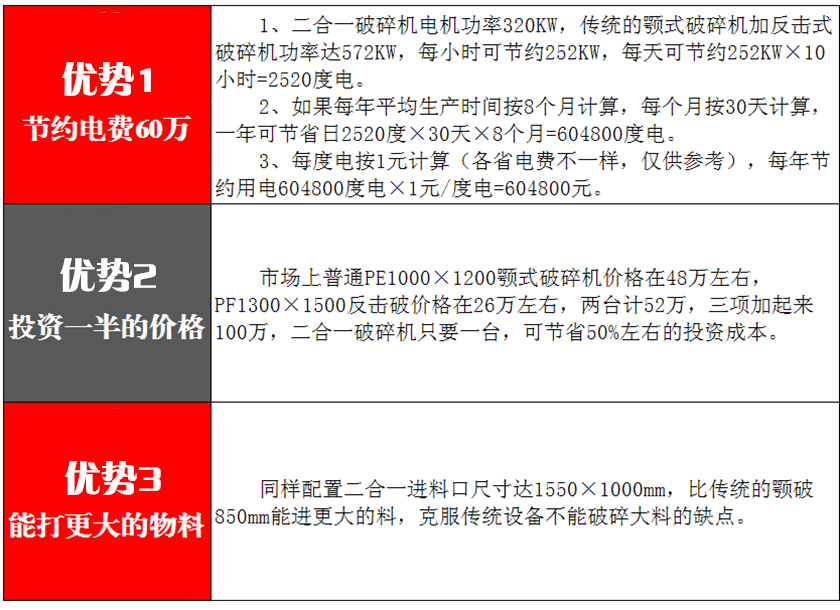 新型高效節(jié)能型二合一破碎機(jī)的八大優(yōu)勢特點: