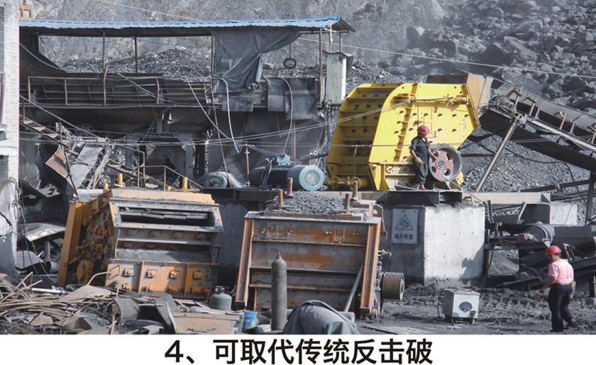 集粗破碎細(xì)破碎為一體,取代傳統(tǒng)的顎式破碎機(jī)及反擊式破碎機(jī),減少流程、減少維修,從而提高生產(chǎn)效率。